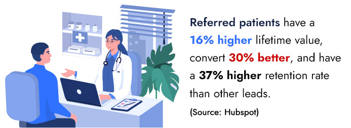 Patient referrals can come from anywhere – a happy patient, a family member, or even through an influencer. The key is to leverage these referrals using a well-designed referral marketing program that incentivizes word of mouth and boosts patient loyalty.